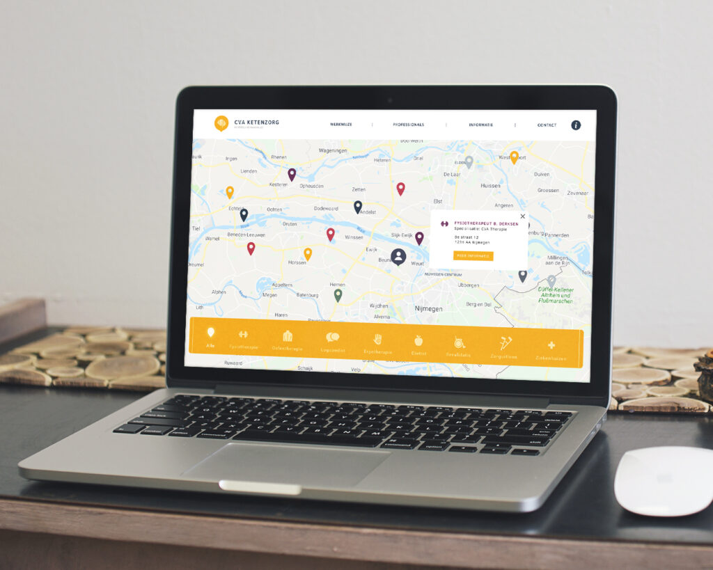 B302 heeft in nauw overleg met de CVA keten gewerkt aan de website. De website biedt op gemakkelijke wijze een overzicht van de zorgaanbieders. De patiënt ziet direct waar de zorgaanbieder bevestigd is, wat de specialisatie is en is er ook direct een contactmogelijkheid tussen de twee partijen.